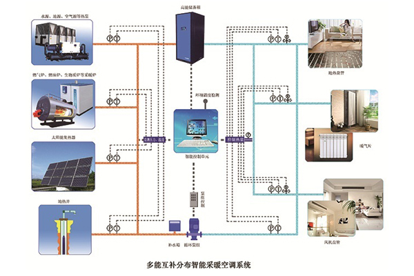 六順電氣依靠多年來在建筑給排水暖通和電氣工控等方面積累的人才和技術優勢,開發出能源互補分布智能的建筑采暖空調系統,是在滿足人們舒適居住環境的前提下,采用如:低谷電能,水(地)源,空氣泵,地熱低溫水,太陽能、風能、生物質能、天然氣等等清潔能源,互補+分布末端供給方式+谷電低成本儲熱+末端環境智能監反饋測調節等綜合技術工藝,通過相變儲能技術,選擇使用廉價、清潔和方便的能源。大限度的減少建筑采暖空調能耗的使用成本,多源互補。